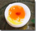 ちなみにお馴染み“瓢亭卵”はこの器具で穴を開け、沸騰湯に入れて6分、すぐ水に落として冷まし、皮をむき、糸で卵を半分に切る。ちょっと塩をふるか、薄口醤油をぽとっと落としていただく。 |